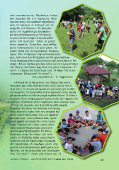 σάν κατασκηνωτής. Περάσαμε ἀκόμη πιό ὄ μορφα ἀπ’ ὅ,τι περίμενα. Μοῦ ἄρεσαν πολύ τά ὁμαδικά παιχνίδια ὅ - πως τά τακάκια, οἱ σταθμοί καί τό παιχνίδι τοῦ δάσους. Τά ἀπογεύ- ματα στό ἀμφιθέατρο ξεσηκώνα - με τήν κατασκήνωση μέ τό τρα γού - δι μας καί ἀ κούγαμε τά ὡραῖα μαθή- ματα τοῦ ἀρ χηγοῦ. Ὅλες οἱ μέ ρες ἦταν γεμάτες. Παιχνίδια, πρωταθλή- ματα ποδοσφαίρου καί χάντμπολ, πο - ρεῖ ες ἀλλά καί ἁγιογρα φικός διαγω νι- σμός. Ὅλα τά ζήσαμε στήν κατασκήνωσή μας. Αὐτό πού δέν θά ξεχάσω καί θά προσπαθήσω νά τό θυ μᾶμαι ὅλη τή χρονιά εἶναι κάτι πού εἶπε ὁ π. Μι- χαήλ: «Νά μή ζητᾶμε μονά χα ἀλλά καί νά εὐχαριστοῦμε τόν Θεό γι’ αὐτά πού μᾶς δίνει καί γιά ὅ,τι ἔ χουμε». Γι’ αὐτό, Σ’ εὐχαριστῶ Χριστέ μου γιά τό δῶρο τῆς κατα- σκήνωσης. Εὐχαριστῶ “ἐν παντί”». Ν.Σ., περίοδος Δ´- Ε´ Δημοτικοῦ «Αὐτή ἦταν ἡ 4η χρονιά πού πῆγα στήν κατα- σκήνωσή μας στήν Καστανοῦσα. Μοῦ ἄρεσε πού ἔ - γινε καί ἡ 7η σκηνή καί ἤμασταν περισσότερα παιδιά στό παιχνίδι. Τά τραγούδια φέτος εἶχαν πιό πολύ σχέση μέ τήν πατρίδα καί ἰδιαίτερα μέ τή Μακεδονία. Ὁ ἐνθου- σιασμός ἦταν ἀκόμα μεγαλύτερος κατά τήν «ἡμέρα πα- τρίδας», ἰδιαίτερα στήν παρέλαση πού κάναμε κρα - τώντας τίς σημαῖες πού ἔφτιαξε ἡ κάθε σκηνή. Θυ μᾶ μαι τίς ὧρες πού κάναμε προσευχή στόν πλάτανο κά τω ἀπό τόν σταυρό καί πόσο προσ παθού σαμε ὅλοι νά εἴμαστε προ σ ε κτικοί, γιατί μάθαμε πώς προσ - ευχή χωρίς προσοχή δέν εἶναι προσ - ευχή. Χάρηκα πού πῆρα μέρος στόν ἁγιογραφικό διαγωνισμό γιατί ἔτσι ἔμα θα ἀρκετά πράγματα. Τό σπου- δαιότερο ἦταν ὅτι πῆρα τήν ἀπό- φαση νά διαβάζω κάθε μέρα Καινή Διαθήκη γιά νά ὠφελοῦμαι συνέχεια. Θά προσ πα θῶ νά θυ μᾶμαι μέσα στή χρονιά τά ἐν διαφέ ροντα μαθήματα πού ἄ κου σα, νά τά ἐ φαρμόζω καί νά εὐχαρι - στῶ “ἐν παν τί”, ὅπως μᾶς ἔλεγε καί τό ΑΠΟΛΥΤΡΩΣΙΣ - ΑΥΓΟΥΣΤΟΣ-ΣΕΠΤΕΜΒΡΙΟΣ 2018 221